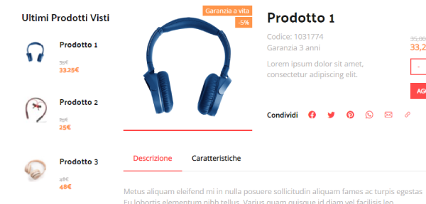 Offri un'esperienza d'acquisto ottimizzata mostrando all'utente la lista dei suoi ultimi prodotti visualizzati direttamente in pagina. Semplifica il processo di vendita fornendo un rapido accesso ai prodotti che l'utente ha già esplorato.